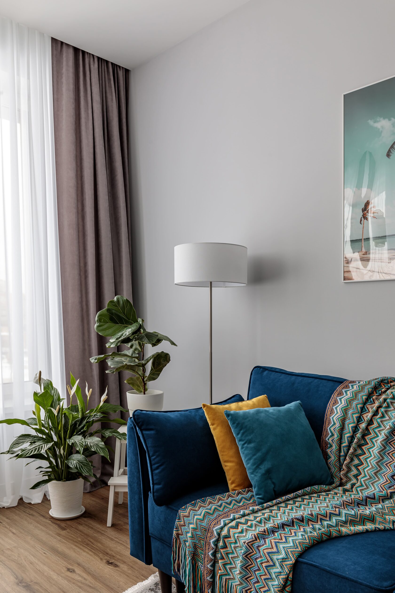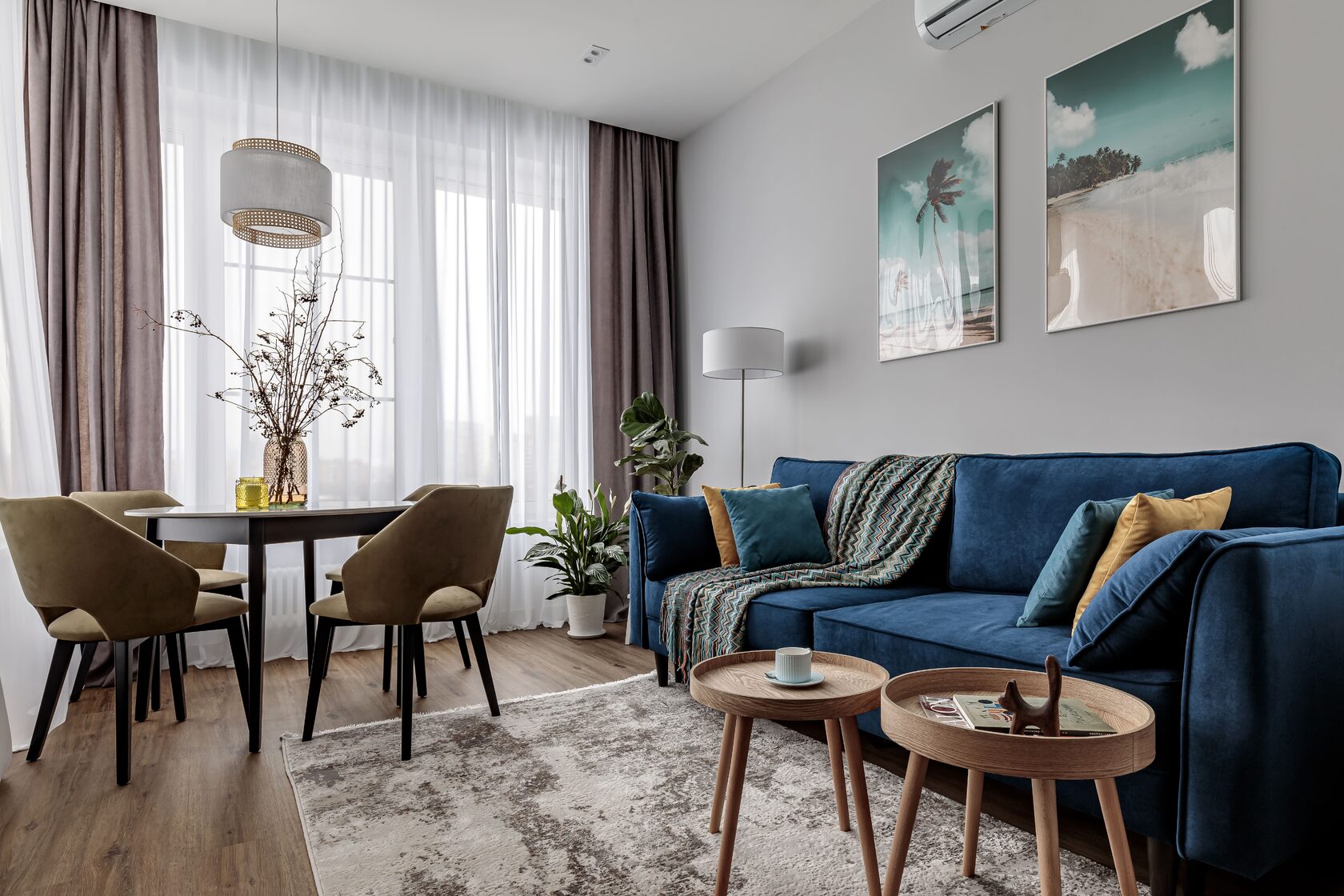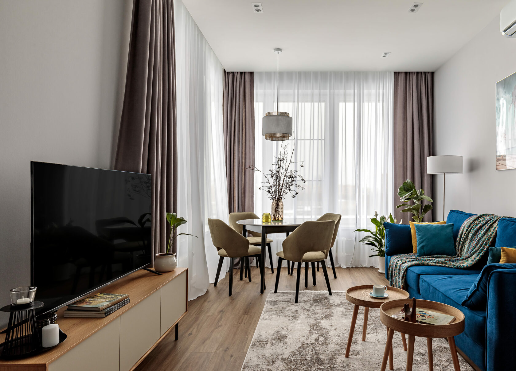 Квартира 48м2 в ЖК Ривер парк в районе Южного речного порта создавалась для заказчицы, которая планировала сдавать жилье в аренду, поэтому задача стояла сделать ремонт с минимальными затратами и в относительно нейтральном дизайне, который станет универсальным как для семейной пары, так и для одного человека не зависимо от пола. Отправной точкой для создания концепции стало месторасположение ЖК , поэтому в проекте присутствуют оттенки синего, голубого и серого цветов, отсылающих нас к водной стихии и московскому небу. Этот прием позволил объединить внутреннее пространство с окружающей средой, но при этом добавил ощущение летнего отпуска (картины на стене, яркий декор, глубокие оттенки синего, плетеный декор) Квартира предназначена для современных людей, возможно, работающих из дома, ценящих уют и спокойствие, работающих в сфере IT.
